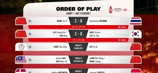 2025年世界羽聯(lián)世界巡回賽總決賽的賽場上演了一場引人矚目的男單巔峰對決。在B組次輪的一場焦點戰(zhàn)役中,中國選手石宇奇與中國臺北名將周天成狹路相逢。經過三局苦戰(zhàn),石宇奇最終以2-1(21-11、19-21、21-15)的比分力克對手,憑借這場關鍵勝利,他豪取小組賽兩連勝,與同樣兩連勝的日本選手奈良岡功大攜手,提前一輪鎖定了四強席位。