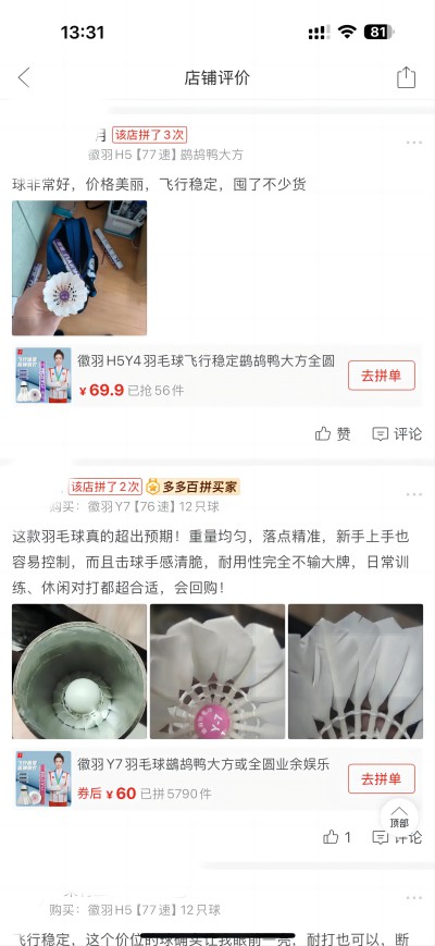 從淘寶、抖音的海量好評,到中羽在線的真實測評,從“便宜好用”到“品質超出預期”,徽羽羽毛球用口碑證明:好球不一定貴,用心做產品,自然能打動人心。它沒有華麗的營銷,卻靠耐打、穩定、好手感,成為球友們口口相傳的“國民口糧球”。